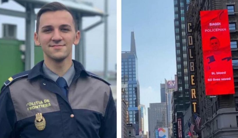 Polițistul român care a salvat 60 de oameni în doar 3 ani. Un polițist de frontieră din județul Bihor a salvat 60 de oameni în doar trei ani. Tânărul de 23 de ani a donat lunar sânge care a fost folosit pentru salvarea pacienților aflați în stare critică. Povestea lui a fost folosită într-o campanie, fiind proiectată pe un panou publicitar din New York.